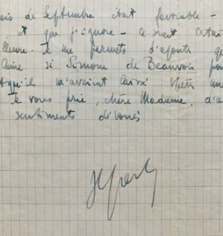 Très belle lettre de Jean-Paul Sartre sur les préparatifs de son voyage en Chine avec Simone de Beauvoir