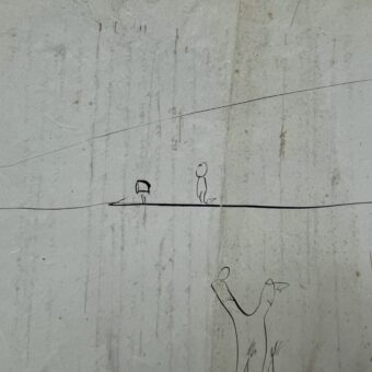 3 dessins de Saint-Exupéry esquissés à la plume au dos du brouillon d’un dialogue entre pilotes