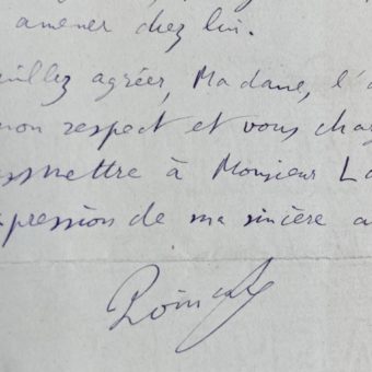 Lettre d’Henri Matisse adressée à la veuve de son ami le peintre Thorndike, à Nice