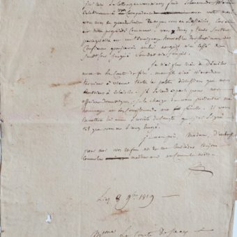 Fouché, âgé, écrit à la veuve de son ami Lecomte, propriétaire du château de Sceaux