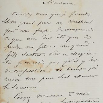Belle lettre de Victor Hugo adressée à l’épouse du romancier Octave Feuillet