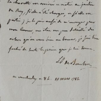 Rares lettre et manuscrit de Pierre Charles Cosson adressés à Justine Favart