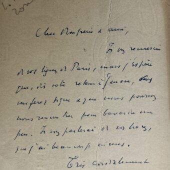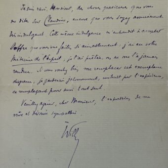 De Pontrieux, Paul Signac remercie Maurice de Fleury d’avoir exposé ses toiles « en si glorieuse compagnie »
