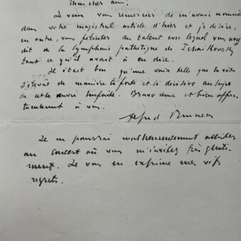 Lettre d’Alfred Bruneau sur la symphonie pathétique de Tchaikovsky, « cette oeuvre imparfaite »