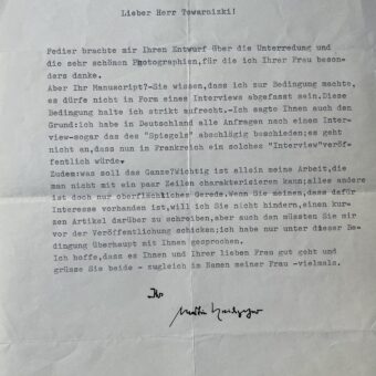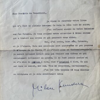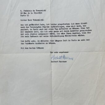 Lettre du peintre André Masson adressée à l’acteur américain Tony Curtis
