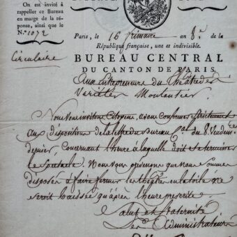 Lettre du conventionnel montagnard Antoine Bonnier d’Alco depuis le Congrès de Rastadt, où il fut assassiné