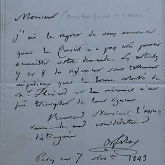 Lettre du chimiste et médecin Mathieu Orfila adressée à Amédée Girod de l’Ain