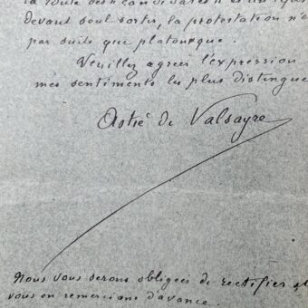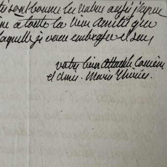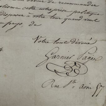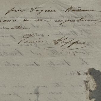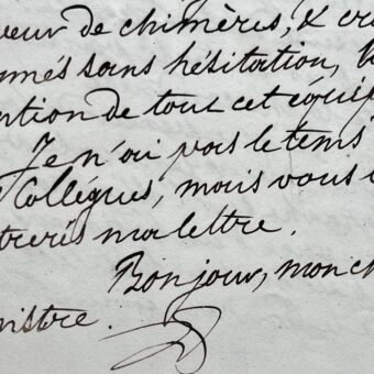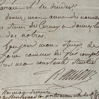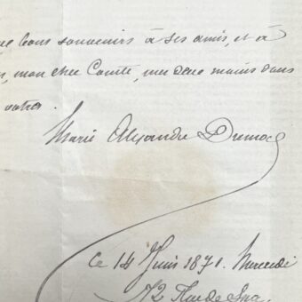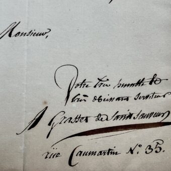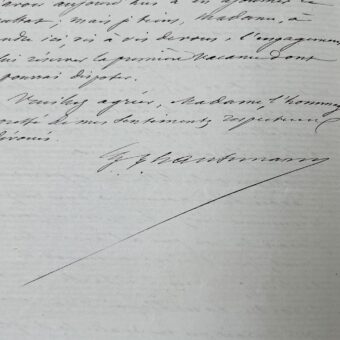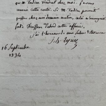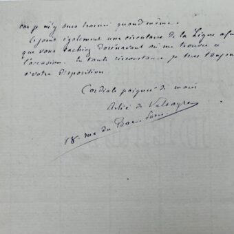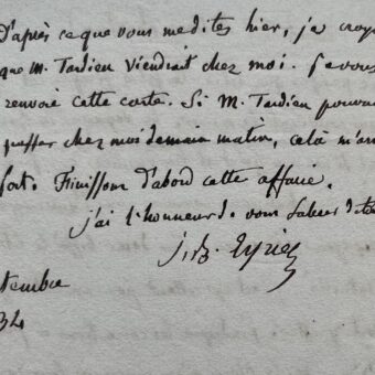 Billet autographe de l’essayiste américain Washington Irving lors de son séjour en France