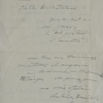 Antoine Bourdelle offre un bronze à son ami le médecin William Oettinger