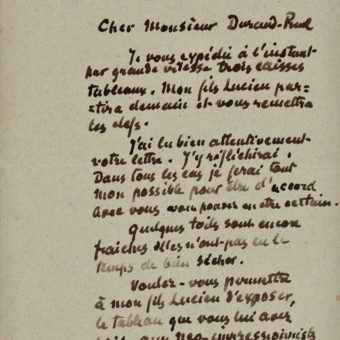 Pissarro envoie 3 caisses de tableaux à Durand-Ruel