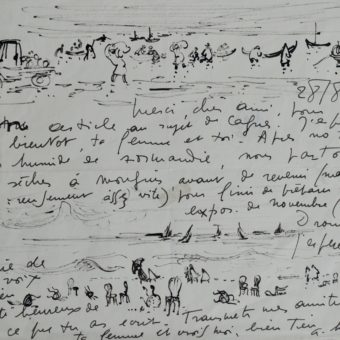 Jolie lettre d’André Hambourg illustrée de deux vues de plages et de mer
