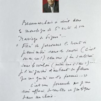 Jean Piat cite et commente une maxime de vie de Beaumarchais dans Le Mariage de Figaro