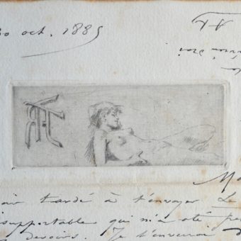 Belle lettre de Félicien Rops sur Le Semeur de parabole avec gravure originale en tête