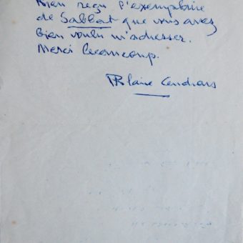 Blaise Cendrars reçoit un exemplaire de Sabbat, de Maurice Sachs