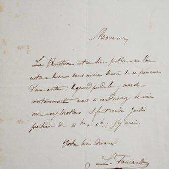 Lettre de Jules Bergeret, général de la Commune, au librairie Baudry