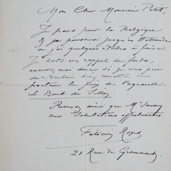 Félicien Rops part réaliser des études en Hollande et réclame le paiement d’une aquarelle