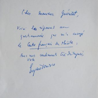 Envoi autographe signé d’Henri Michaux à Gwen-Aël Bolloré, sur papier Japon