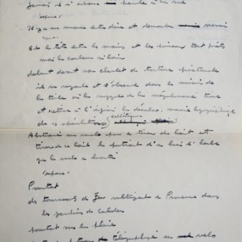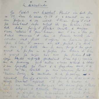 Grand manuscrit d’une chronique théâtrale de Jacques Prévert