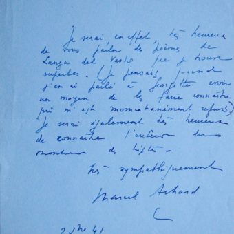Pierre Reverdy, Marcel Cachin et Michel Leiris écrivent leurs remerciements aux Péju