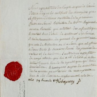 Augustin de Robespierre accorde un congé à un capitaine de l’armée d’Italie