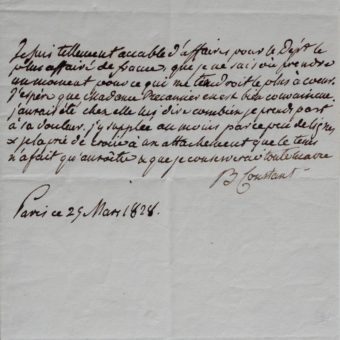 Benjamin Constant assure son attachement éternel à Juliette Récamier