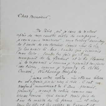 Rare et magnifique lettre d’Alain-Fournier à André Suarès sur le Grand Meaulnes
