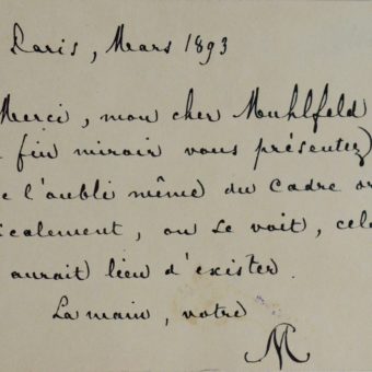Délicieuse carte de Mallarmé à son ami Lucien Muhlfeld après la publication de Vers et prose