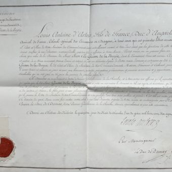 Brevet de secrétaire des commandements signée par Louis-Antoine d’Angoulême, en 1817