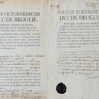 Émigration : deux documents signés par le maréchal duc de Broglie en 1794 et 1795