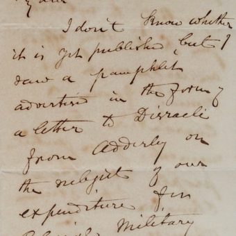Intéressante lettre de Cobden sur Disraeli et Adderley
