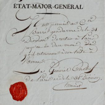 Autorisation octroyée par Hanriot pour un gendarme de la Force armée de Paris, pendant la Terreur
