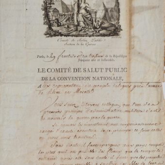 Pièce du Comité de Salut public avec grande vignette de Quéverdo, sur les réquisitions dans les pays conquis