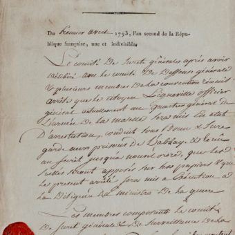 Ordre d’arrestation du général René-Charles de Ligneville, le 1er avril 1793