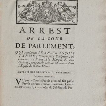 Condamnation au carcan, au fouet et aux galères, pour le vol d’un mouchoir dans l’église de Notre-Dame