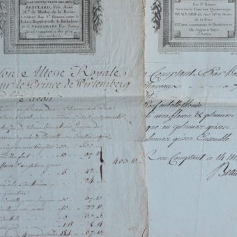 Deux belles factures illustrées du marchand de mode de Marie-Antoinette, Beaulard, pour le Prince de Wurtemberg