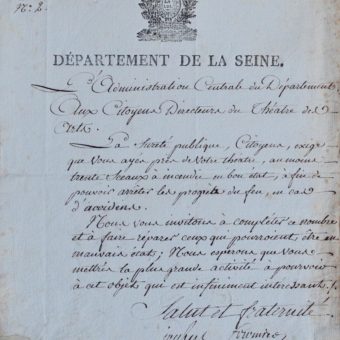 Intéressant document de 1797 sur la lutte contre les incendies dans les théâtres à Paris