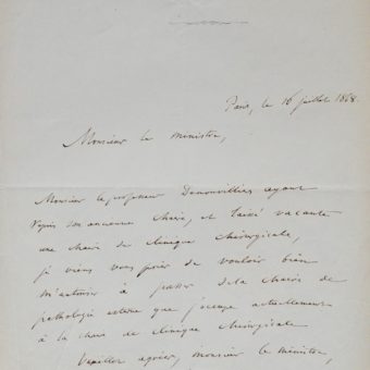 Paul Broca brigue la chaire de clinique chirurgicale à la suite de Denonvilliers
