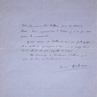 André Malraux, malade, attend le manuscrit de Franz Hellens
