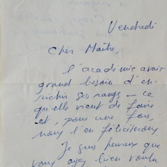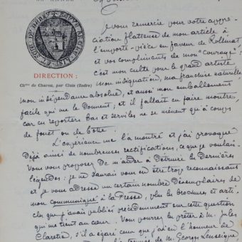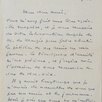Larbaud remercie un confrère pour l’aboutissement d’une pétition