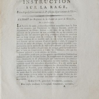 Deux imprimés relatifs à la maladie de la rage, vers 1800 et 1812