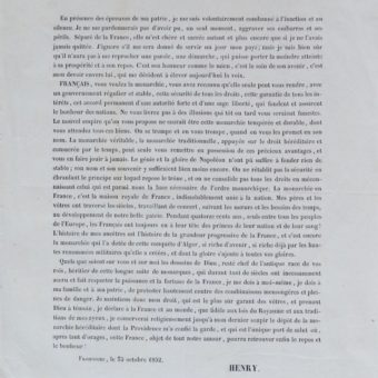 Manifeste du Comte de Chambord, 25 octobre 1852