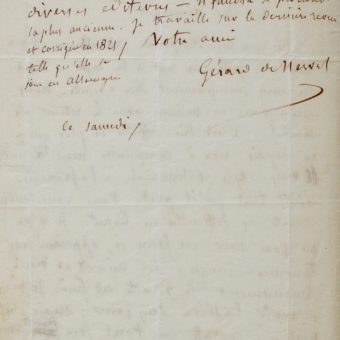 Importante lettre de Gérard de Nerval sur sa traduction de Kotzebue