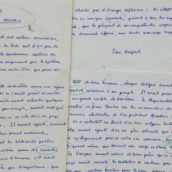 Manuscrit de Jean Raspail sur l’Apartheid et les symboles.