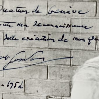 Photo dédicacée de Robert Casadesus pour l’exécution de son quintette.