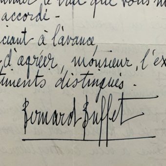 Feuillet signé conjointement par André Malraux et sa compagne Louise de Vilmorin