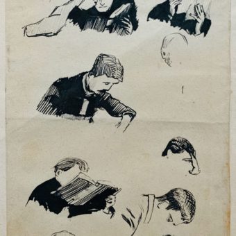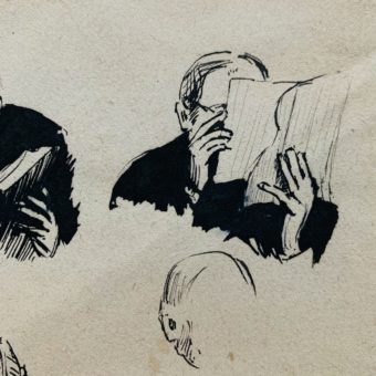 Dessin à l’encre d’Yves Saint-Laurent figurant deux ballerines en costume de scène
