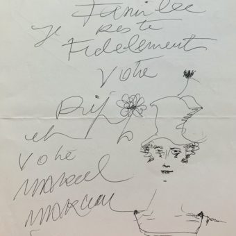 Jolie lettre illustrée d’un autoportrait du Mime Marceau