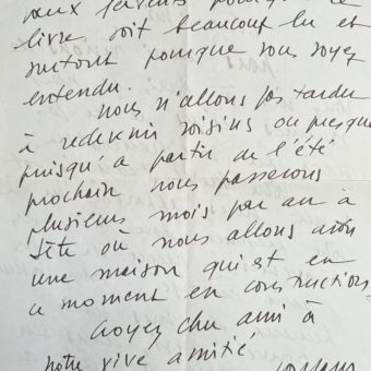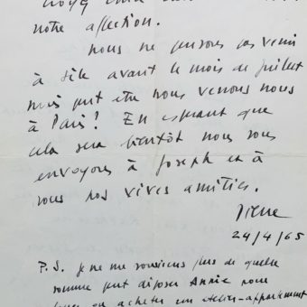 Lettre de Pierre Soulages à ses amis Caroline et Joseph Delteil