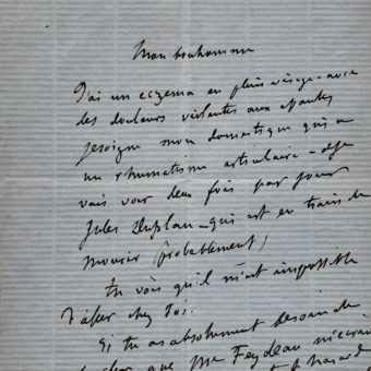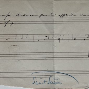Amusante portée musicale de Camille Saint-Saëns avec commentaire pour Jules Massenet