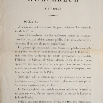 Proclamation de Napoléon III à ses soldats, du QG de Metz le 28 juillet 1870